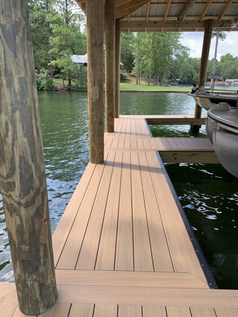 By choosing the right type of wood for the frame and substructure, you ensure that your dock is not only strong and stable but also visually appealing. Whether it’s the natural elegance of hardwoods like teak and cedar or the practical durability of pressure-treated lumber, the right wood choice is key to a dock that stands the test of time at Lake Martin and beyond.