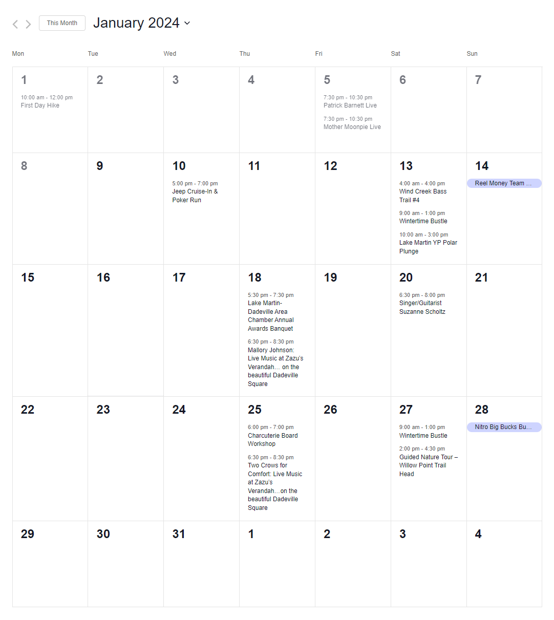 As the new year unfolds, Lake Martin transforms into a community of vibrant activities and events, promising exciting experiences for everyone. January at Lake Martin is not just about serene winter landscapes; it’s a time with community gatherings, outdoor adventures, and cultural events that cater to all ages and interests. Whether you’re a local resident or a visitor seeking to explore the heart of Alabama, there’s a variety of events waiting to enchant you. From family-friendly activities to opportunities for socializing with the community, Lake Martin in January is a destination where memories are made.